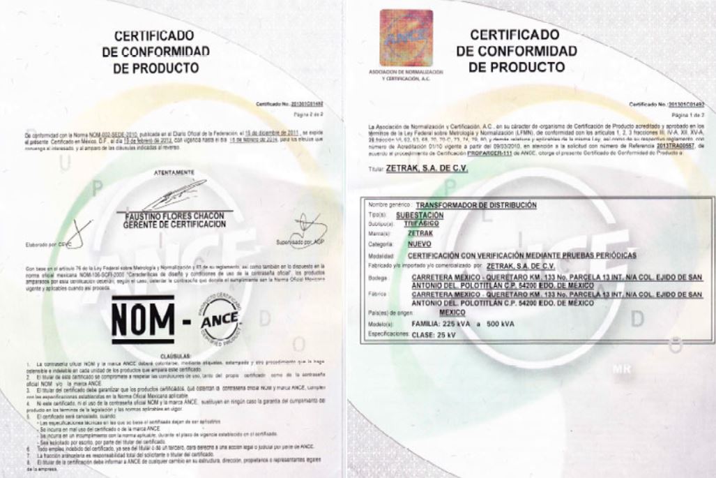 Zetrak ofrece su línea de transformadores sumergidos en aceite, fabricados bajo las normas NMX-J-116 y NMX-J-284, para el control de energía en sistemas de distribución y potencia. Estos transformadores los podemos clasificar en: